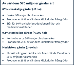 Gårdsstorlek influerar kraftigt markförvaltningen och strategier för livsmedelsproduktion liksom lantbrukares förmåga att adressera landdegradering. Rapporten fastställer att de stora skillnaderna i gårdsstorlek visar ett tydligt behov av skalanpassade åtgärder. Småskaliga jordbrukare med begränsade resurser behöver riktade stöd för att intensifiera produktionen på ett hållbart sätt. Större kommersiella gårdar vars förvaltning påverkar majoriteten av världens jordbruksmark måste engageras genom policys, miljöåtgärder och incitament som belönar ekosystemförvaltning.